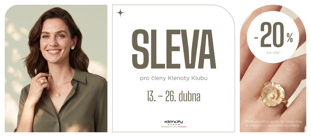 Přijďte s námi oslavit začátek jara se slevou 20 % na vše*. Stačí být členy Klenoty Klubu a vstup do prvních slunečných dnů může být ještě o trošku třpytivější.