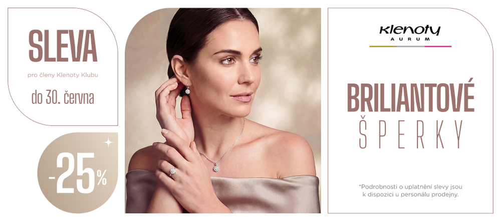 Až do 30. 6. mají členové Klenoty Klubu možnost zazářit se slevou 25 % na brilianty*. Dopřejte si nadčasový třpyt, který podtrhne výjimečné okamžiky – nebo potěší jen tak.