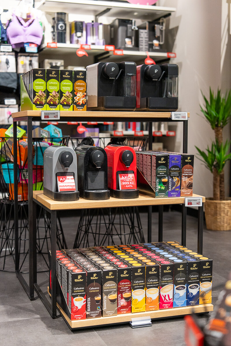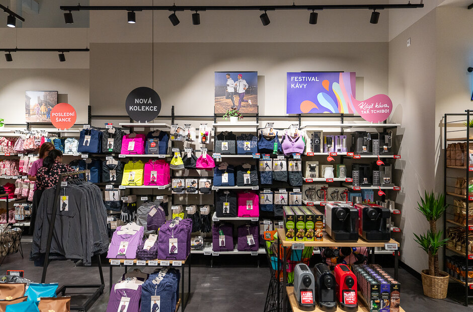 Navštivte obchod Tchibo a nakupujte v příjemné atmosféře provoněné kávou. Nabízíme vám jak kompletní kávové občerstvení s možností posezení, tak i širokou škálu čerstvých zrnkových káv z různých částí světa. Zároveň můžete každý týden vybírat z nové kolekce výrobků spotřebního zboží značky Tchibo, které představujeme v duchu motta „Každý týden nový svět“. Témata kolekcí se v průběhu roku střídají a postupně zahrnují oblasti od vybavení domácnosti a kuchyně přes módu, sport, elektroniku, hračky, šperky až po zahradu.