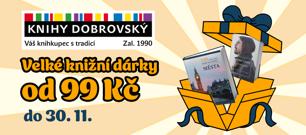 V KNIHY DOBROVSKÝ není o dárky nikdy nouze. Připravili si pro vás víc než 20 dárkových knih, které u nich zakoupíte od 99 Kč. Neváhejte a navštivte své oblíbené knihkupectví, pro možný předčasný dárek k Vánocům. Akce trvá jen od 14.11.-30.11. Slevy se nesčítají.